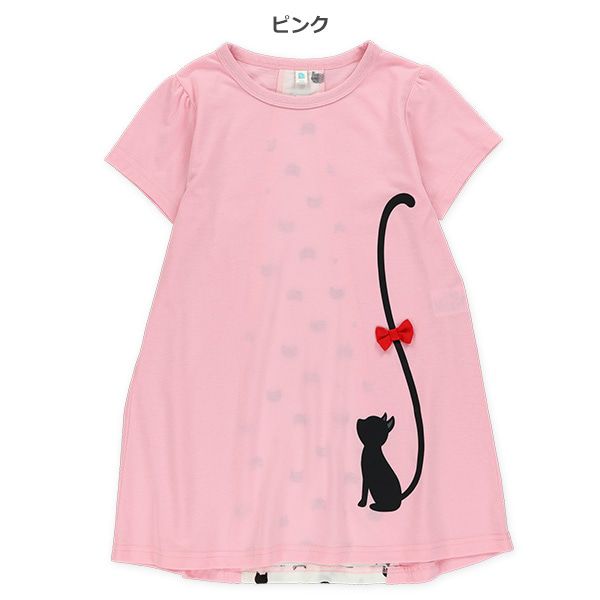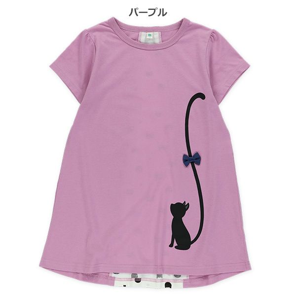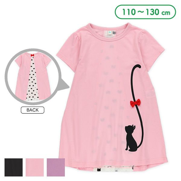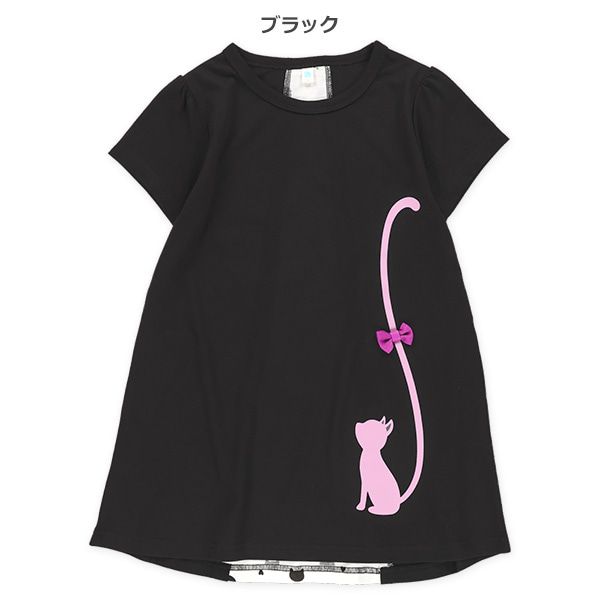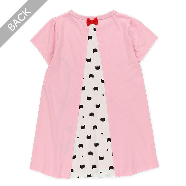 貓咪尾巴背後拼接短袖洋裝