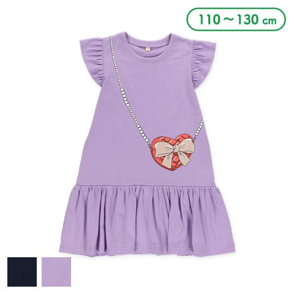 時尚小包印花法式短袖洋裝