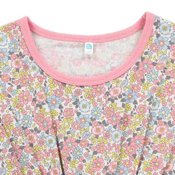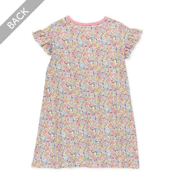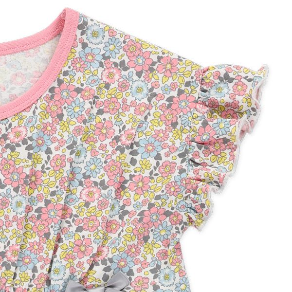 日本西松屋 - 滿版印花小荷葉短袖洋裝-碎花-粉紅