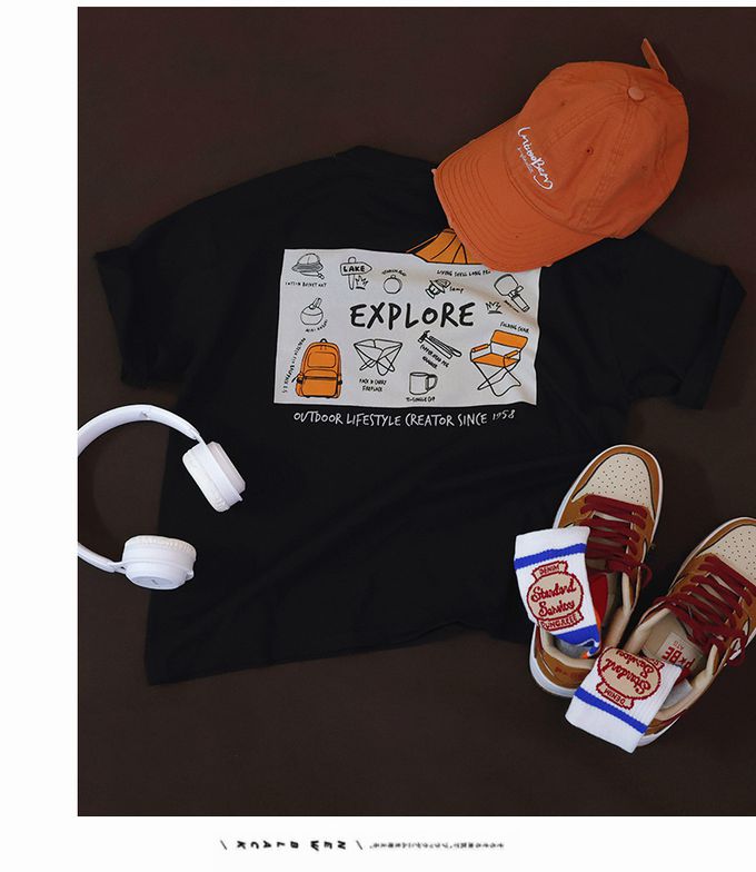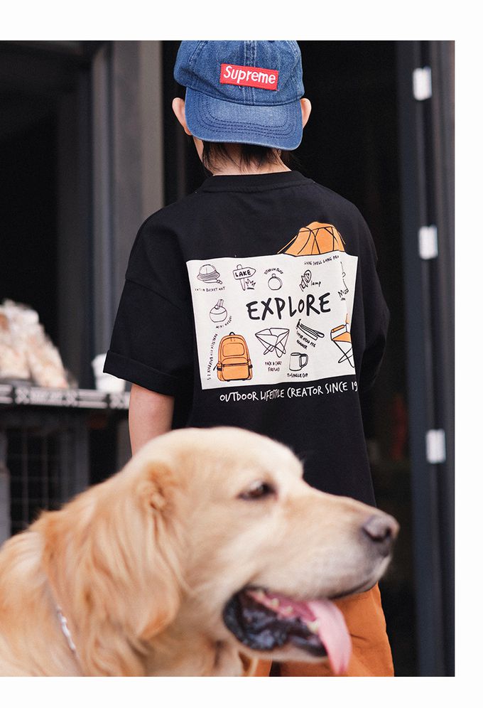Y B S - 純棉圓領短袖上衣-山系露營-咖色