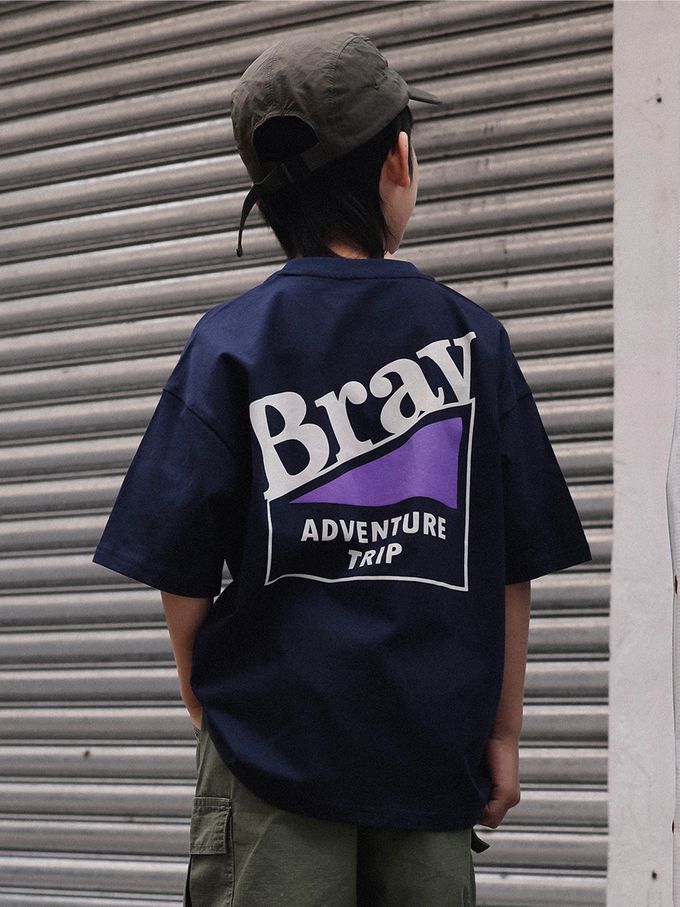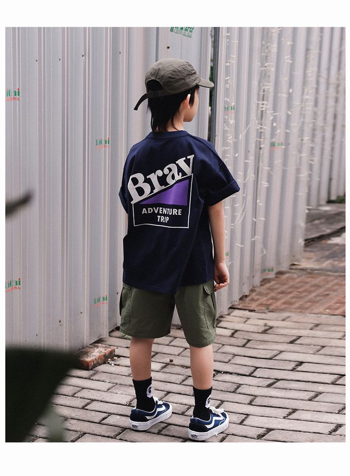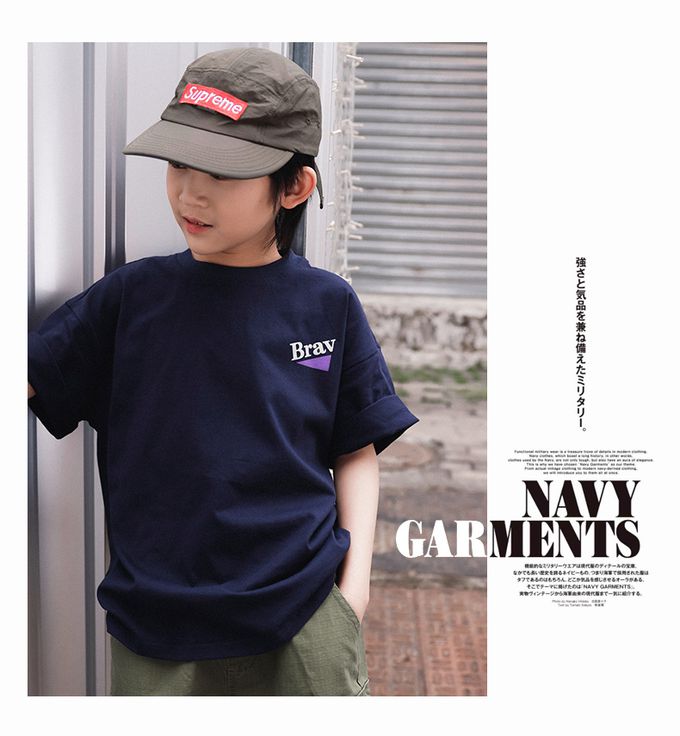純棉圓領短袖上衣-活力字母-藏青