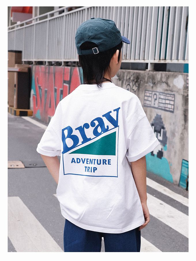 Y B S - 純棉圓領短袖上衣-夏日露營-白色