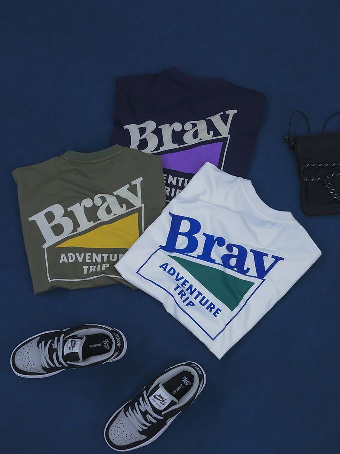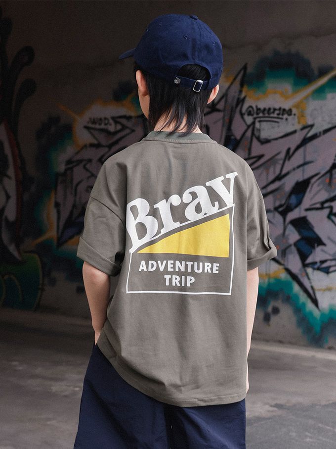 Y B S - 純棉圓領短袖上衣-山系露營-咖色