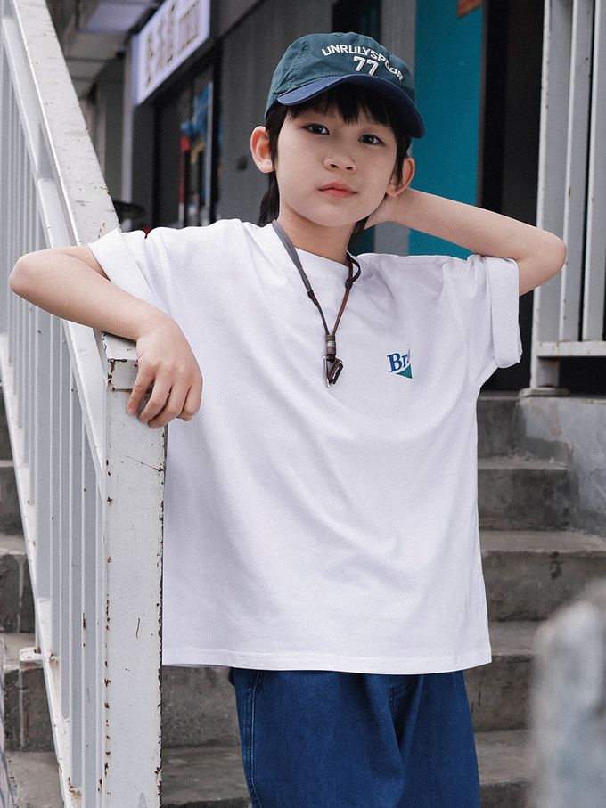 Y B S - 純棉圓領短袖上衣-後領刺繡-白色