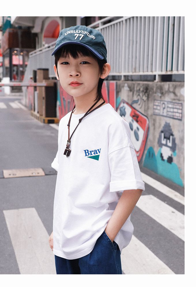 Y B S - 純棉圓領短袖上衣-後領刺繡-白色