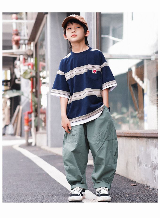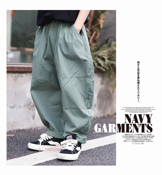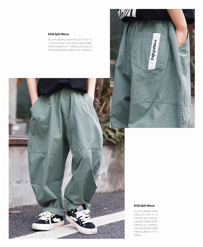 Y B S - 純棉腰鬆緊休閒長褲-口袋布標-綠色