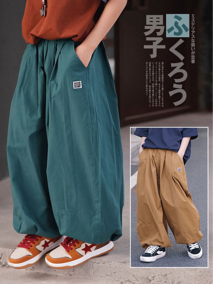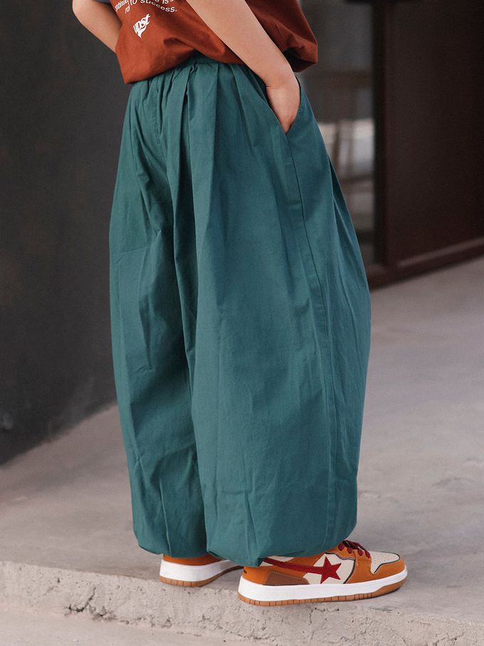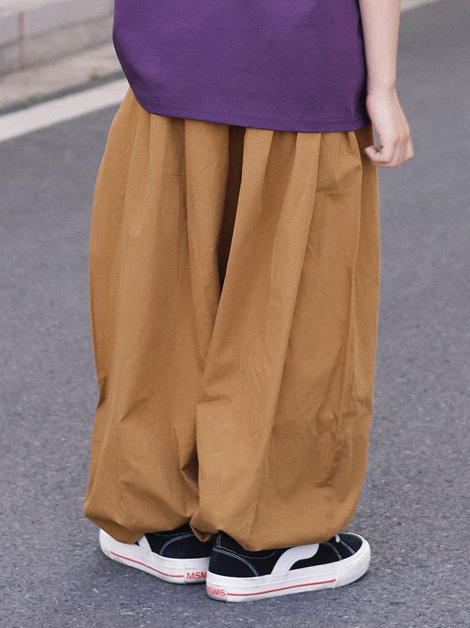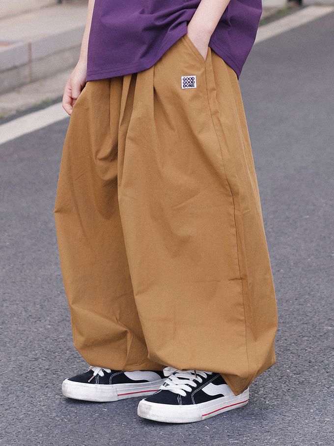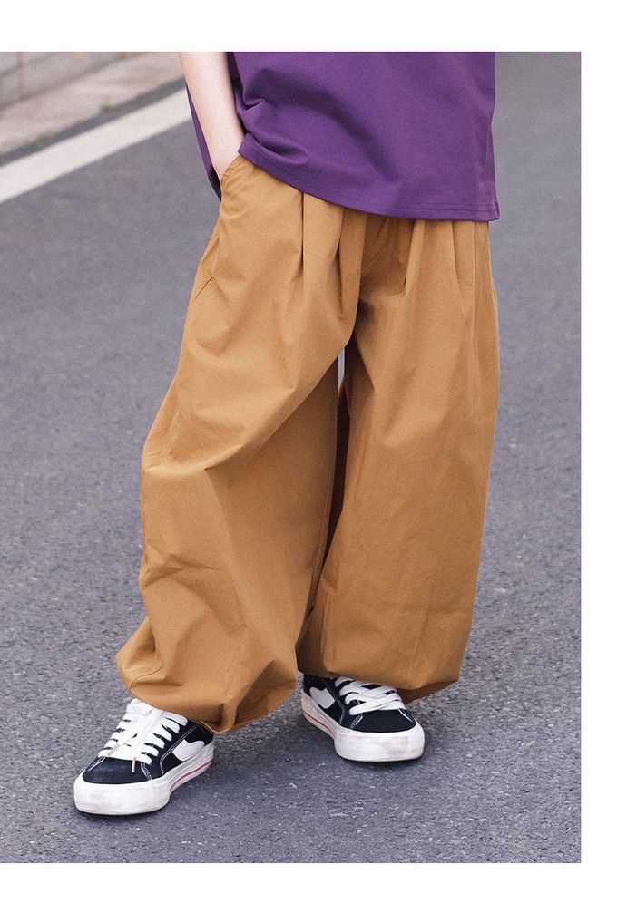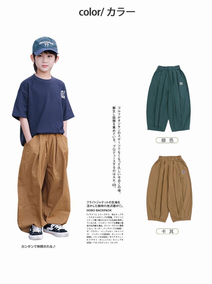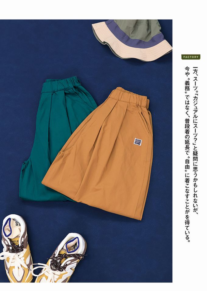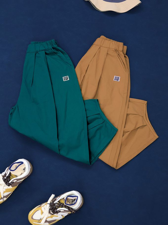 純棉腰鬆緊休閒長褲-小布標-卡其色