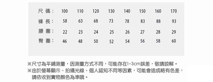 100cm、110cm、120cm、130cm、140cm、150cm、160cm