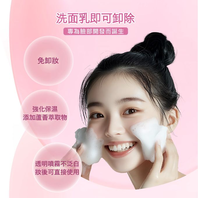 使用方式:在使用前請將瓶身搖晃使其中成分均 匀混合,於臉部20公分以上的距離, 以z字形來回移動讓噴霧均匀灑落於 臉部肌膚,再讓定妝噴霧自然晾乾成 膜即可