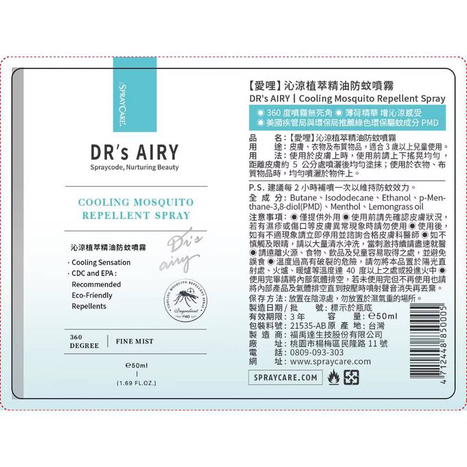 品名:沁涼植萃精油防蚊噴霧 防蚊液