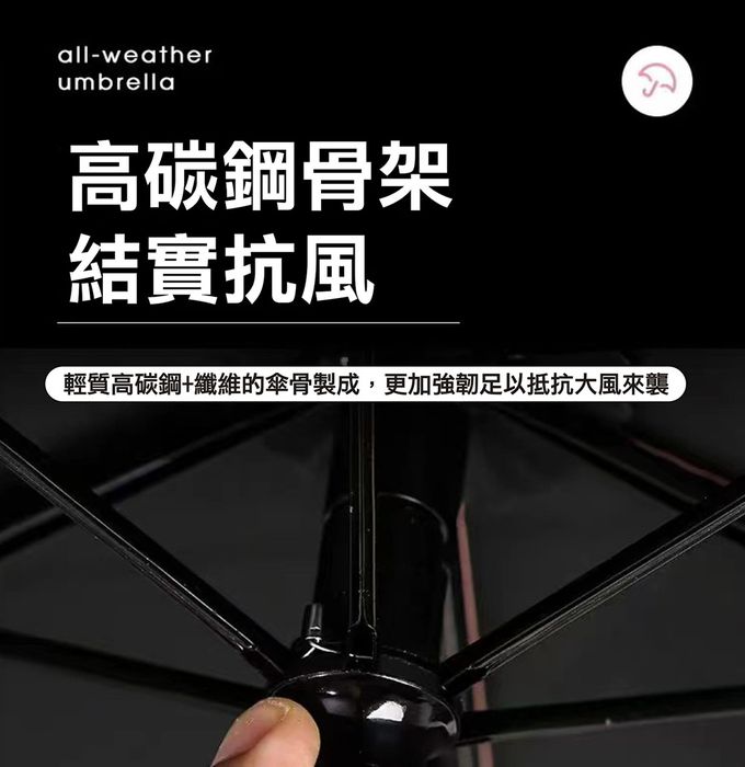 成分:材質:輕質高碳鋼+纖維傘 尺寸:展開100x54cm/縮合高28cm 重量:334g