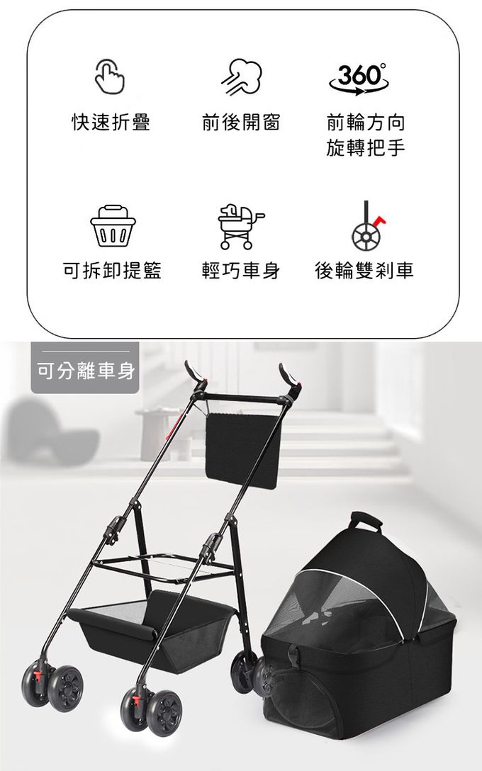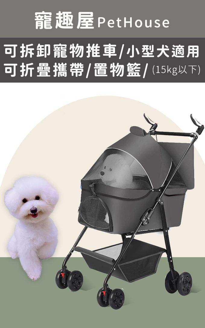 品名:可拆卸寵物推車/可折疊攜帶/置物籃/小型犬適用(15kg以下)
