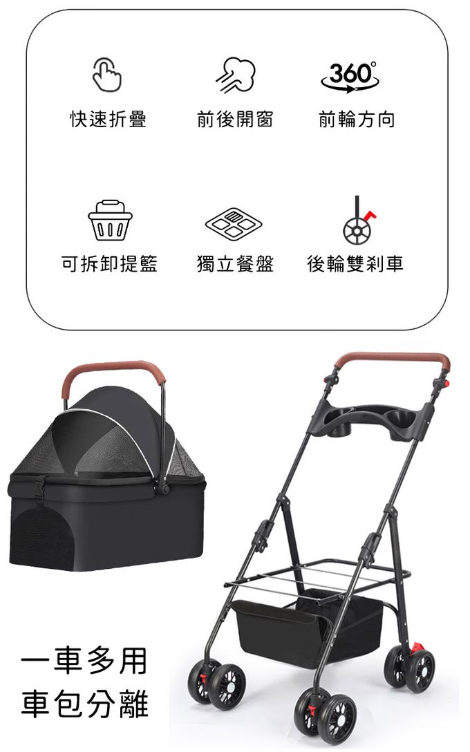品名:可提式拆卸寵物推車/可折疊攜帶/置物籃/附餐盤/中小型犬適用(20kg以下)