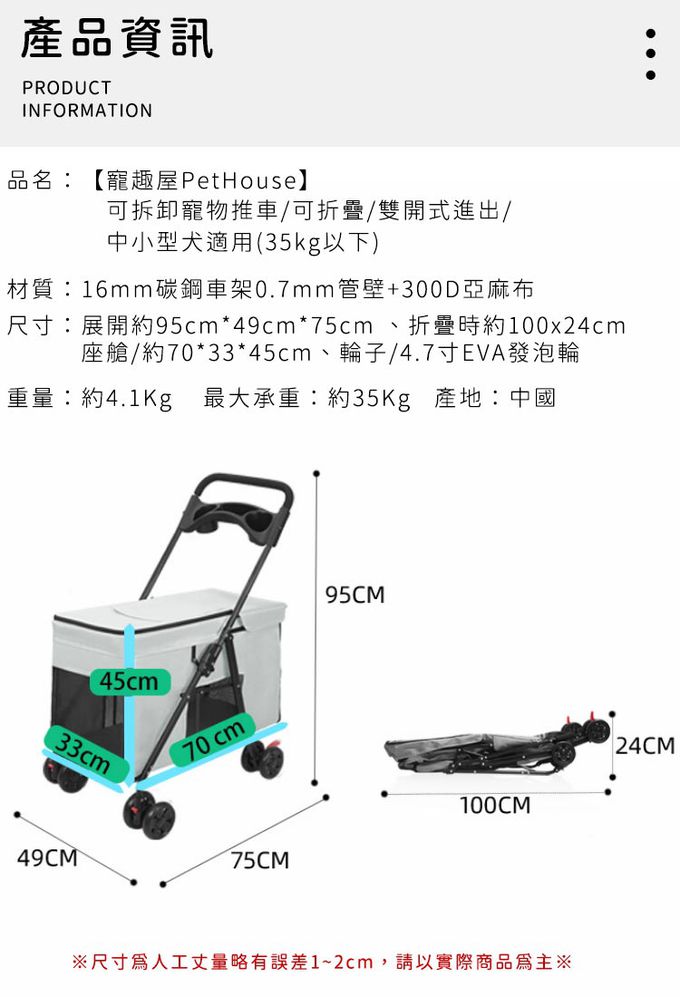 品名:可拆卸寵物推車/可折疊/雙開式進出/中小型犬適用(35kg以下)