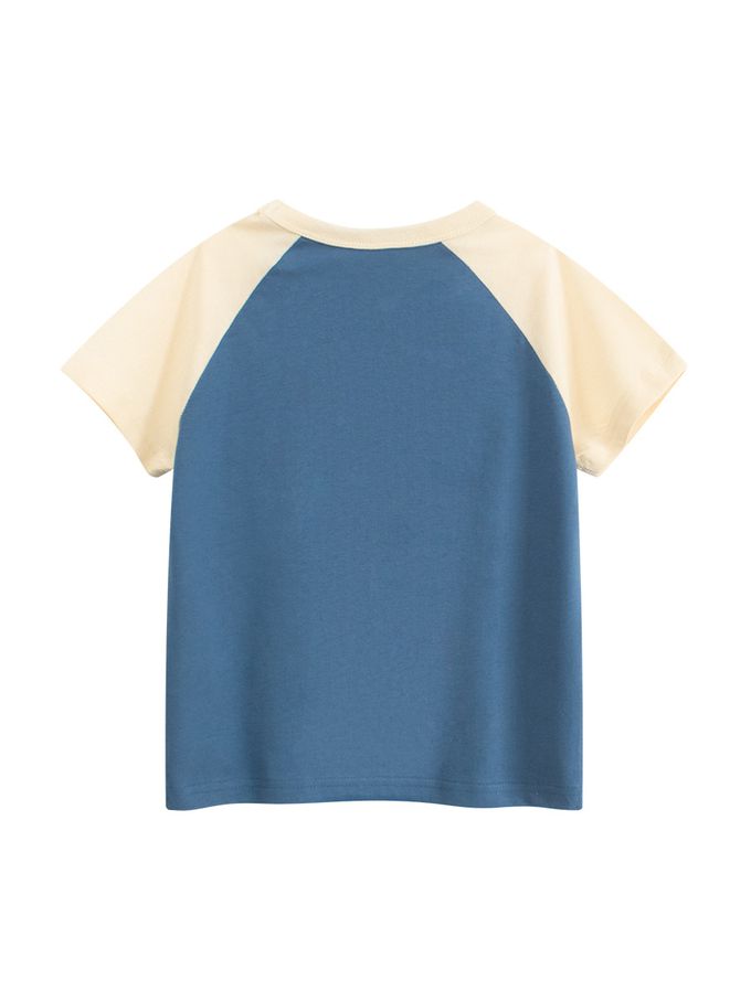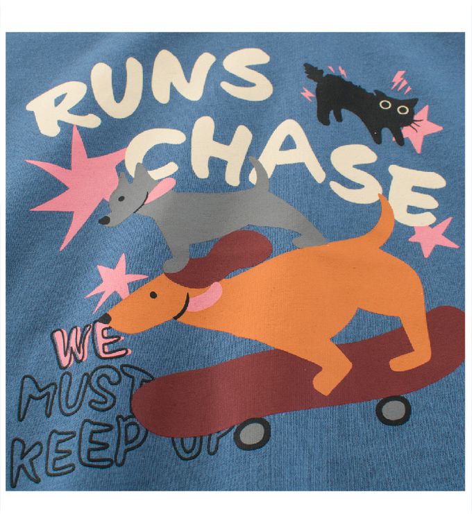 純棉短袖上衣-滑板狗狗-藍/米杏
