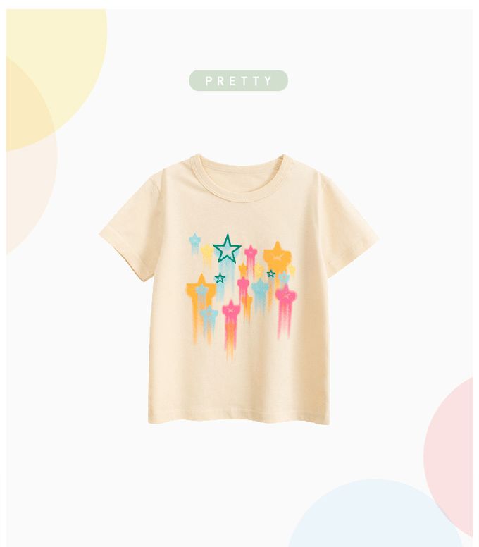 27home - 純棉短袖上衣-繽紛星星-米杏