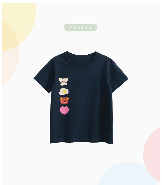 純棉短袖上衣-可愛圖案-藏青