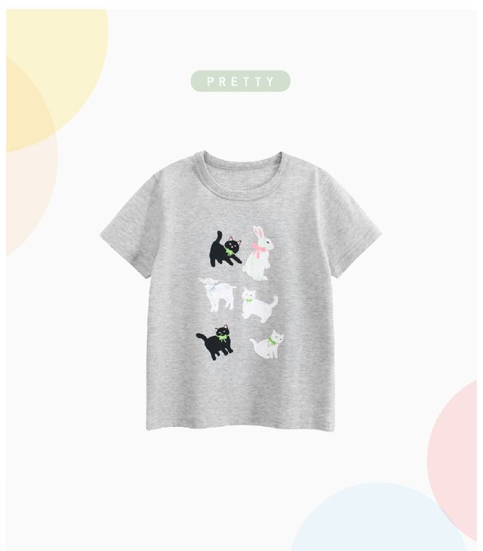 純棉短袖上衣-優雅動物-灰色