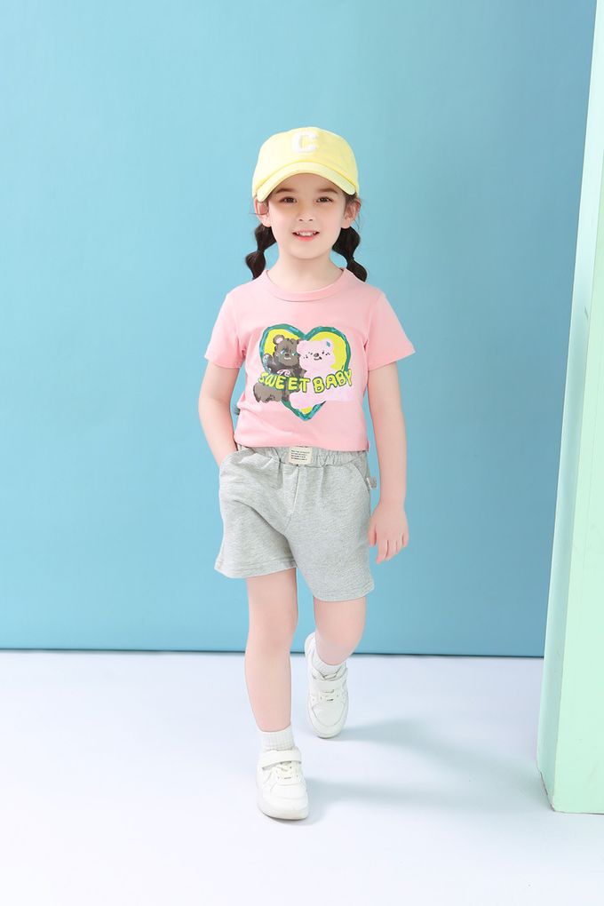 27home - 純棉腰鬆緊短褲-雙釦裝飾-粉色