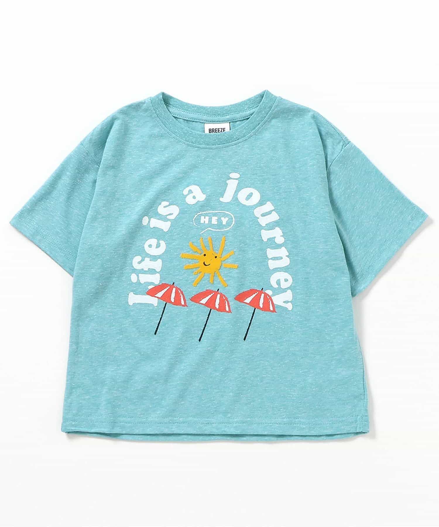 日本 BREEZE - 夏日字母印花短袖上衣-度假太陽-藍綠