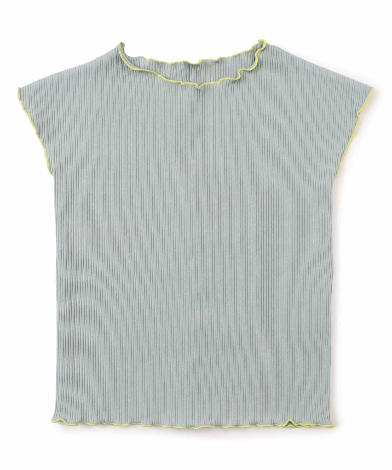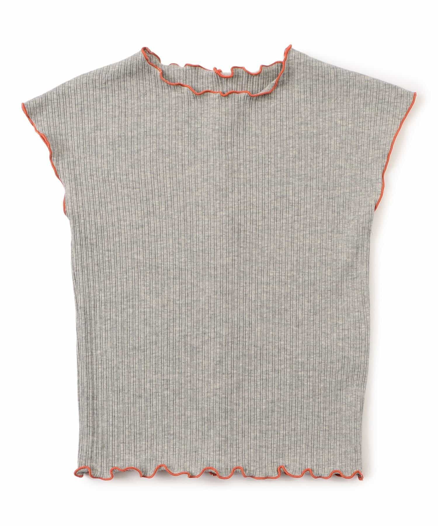 日本 BREEZE - 柔軟木耳邊羅紋無袖上衣-淺棕灰