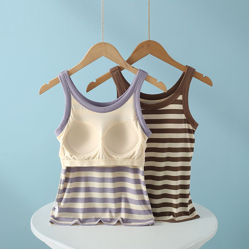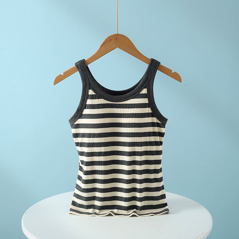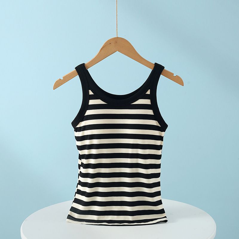 莫代爾柔軟涼感Bra T背心-條紋-黑色