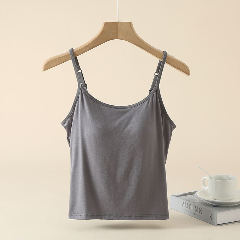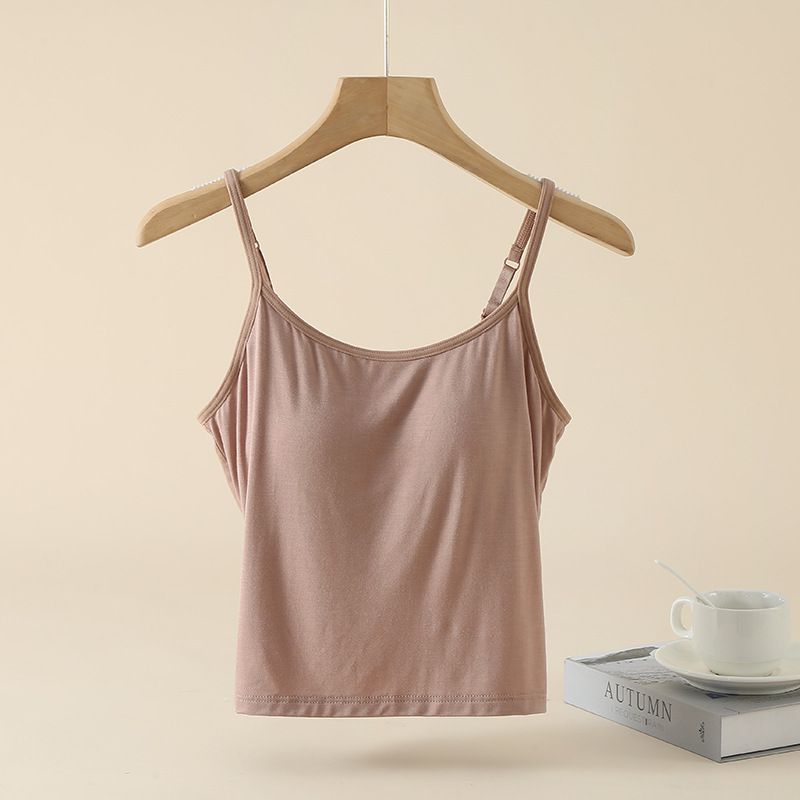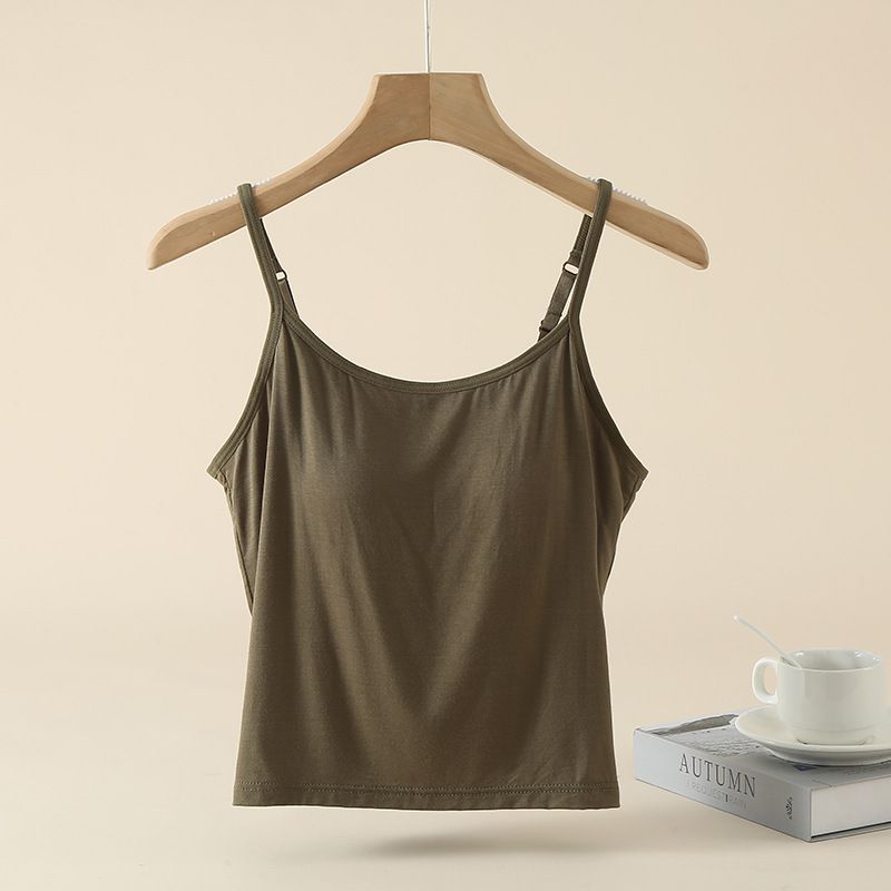 莫代爾柔軟涼感Bra T細肩帶背心-卡其色