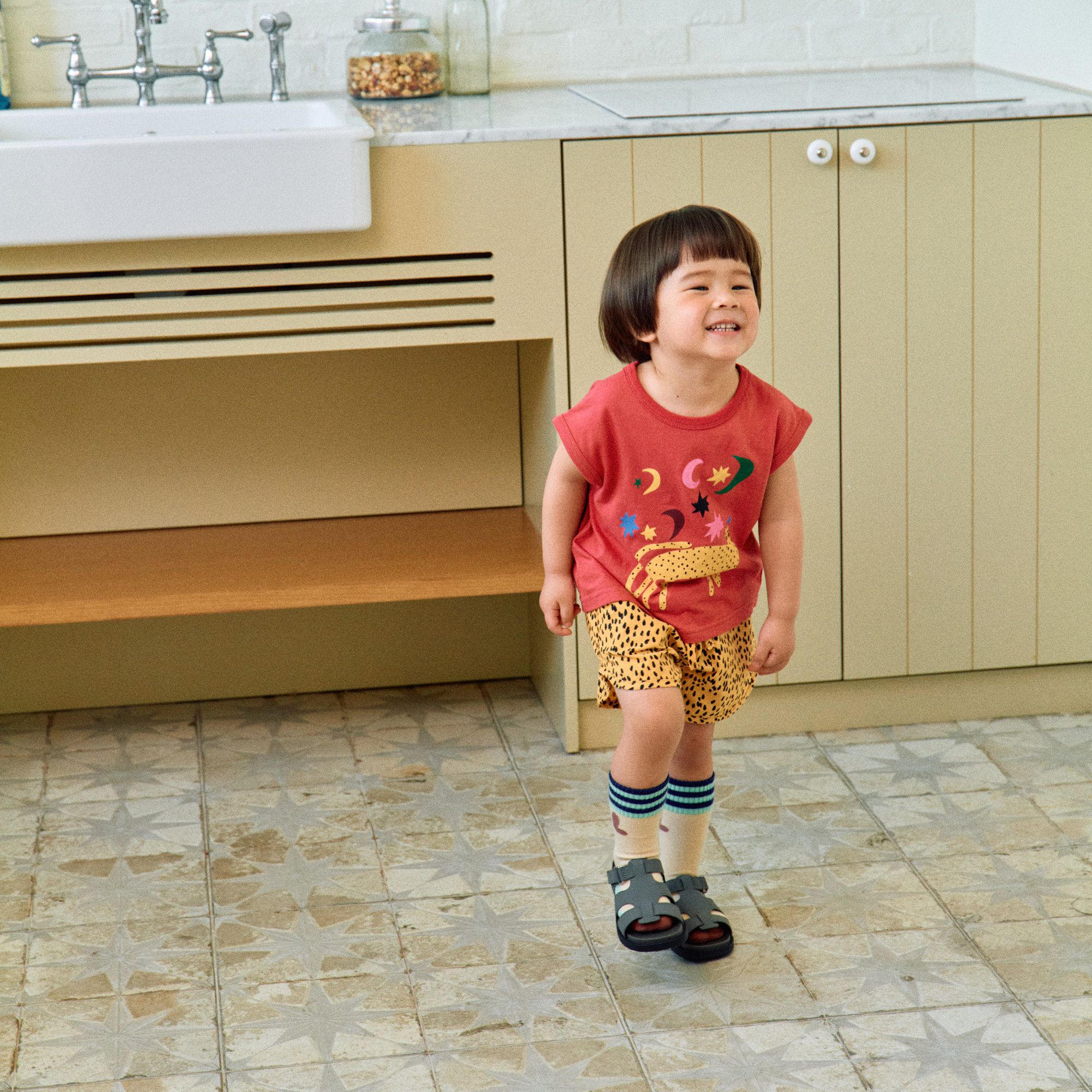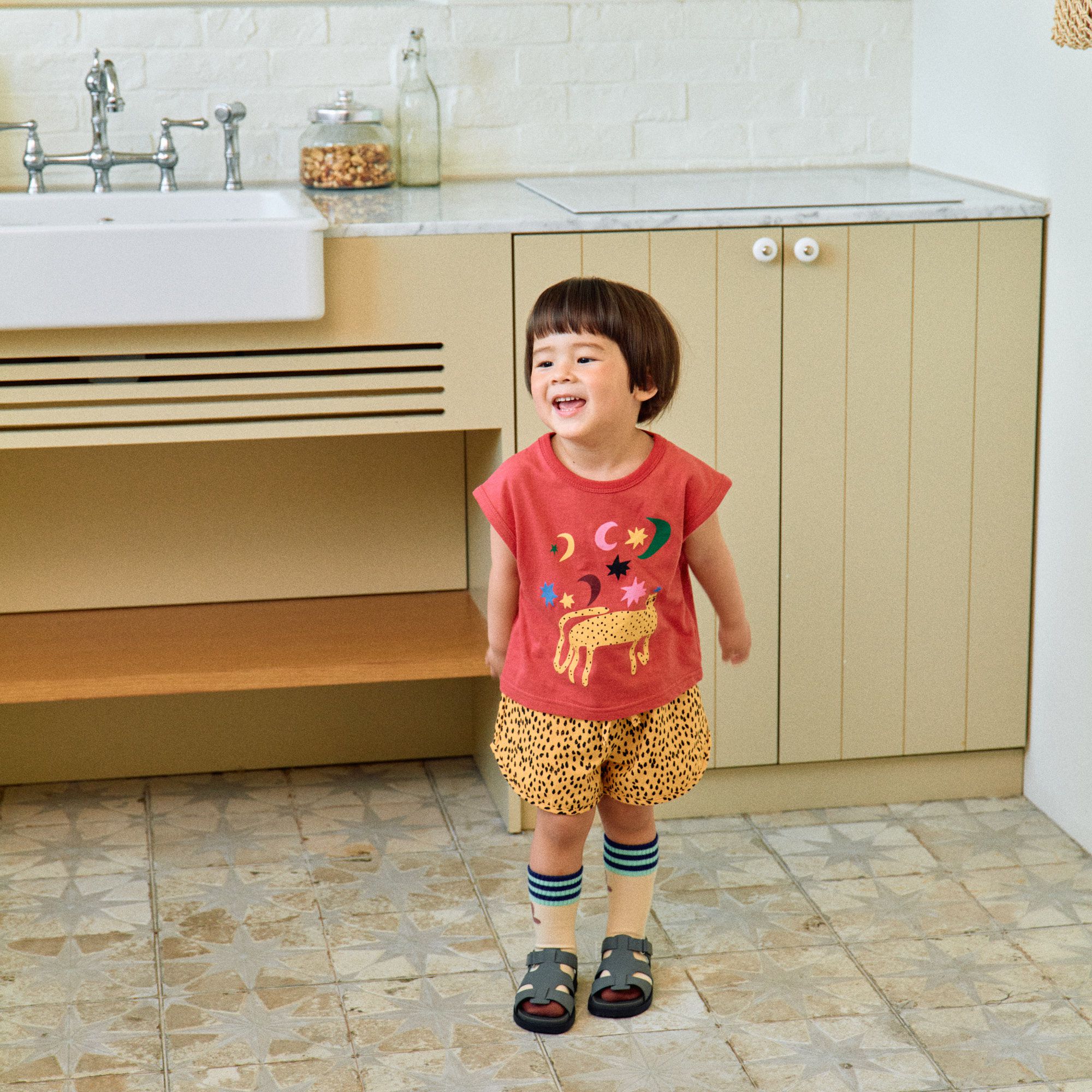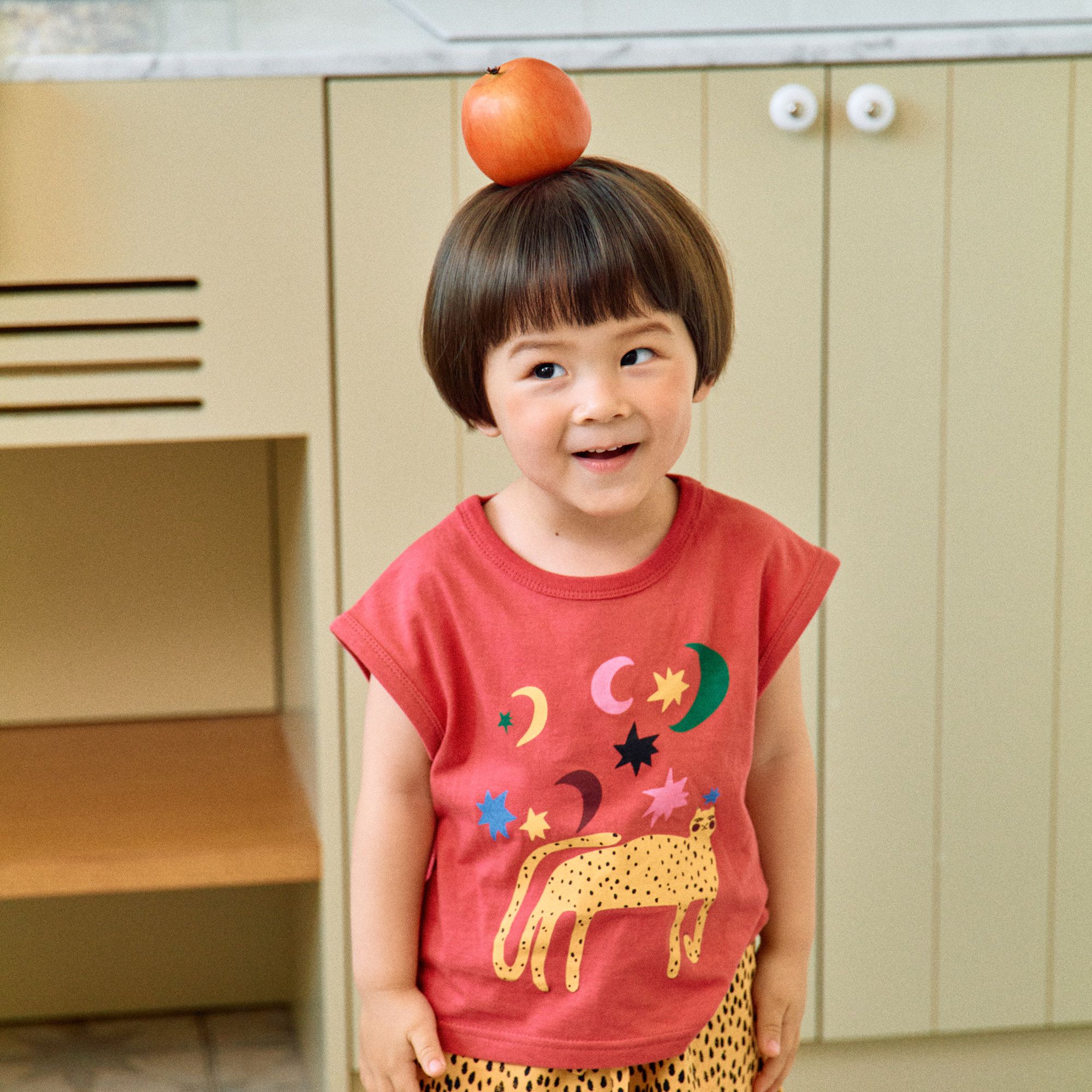 韓國 First Blue - 動物圖案插畫無袖上衣-晚安花豹-紅