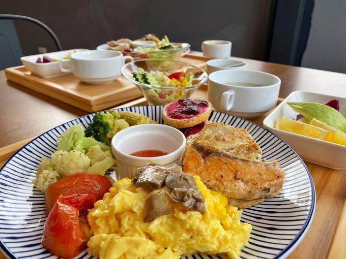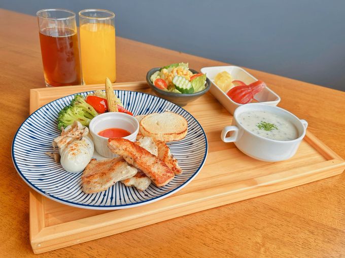 ★ 晨曦時光|用主廚手工早餐開啟美好的一天!雙主餐(香嫩雞肉、義式香煎鮭魚)、當季時蔬、水煮蛋、麵包、松露菌菇濃湯、柚香沙拉、水果、飲料咖啡!