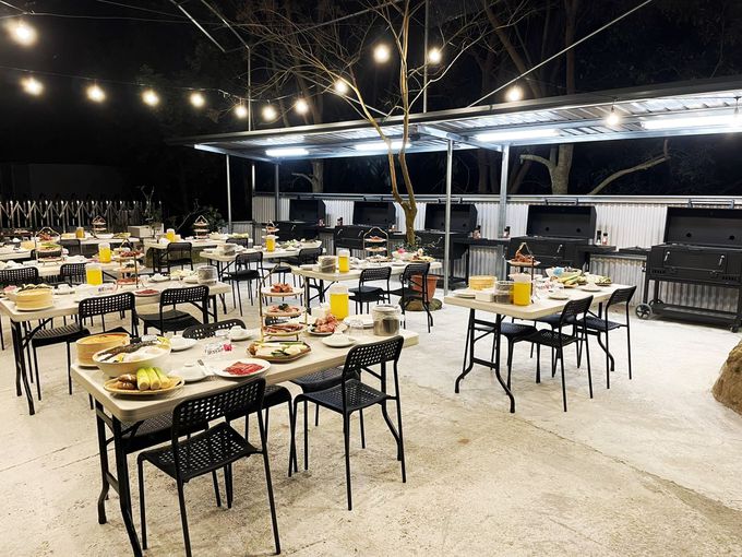 晚餐是戶外BBQ呢!場地在採梅子場地的旁邊,場地布置得很漂亮,像是在布滿星星的星空下吃飯