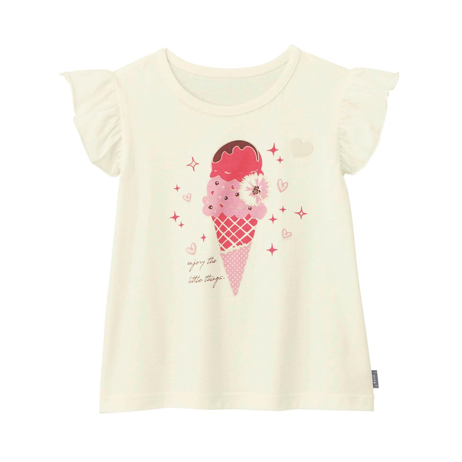 日本千趣會 - 純棉甜美荷葉短袖上衣-冰淇淋甜筒-白