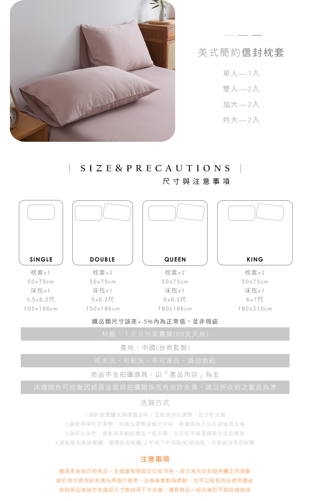 ◎內容:60支天絲床包枕套組(此賣場僅販售床包枕套,不含被套)