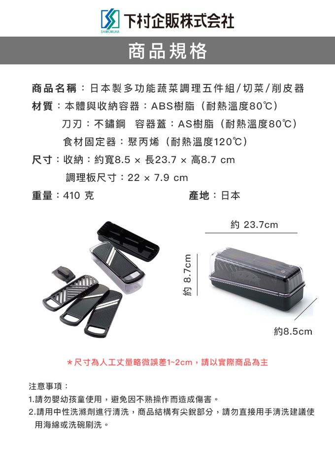 品名:日本製多功能蔬菜調理五件組/切菜/削皮器