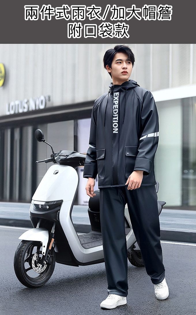 品名:兩件式雨衣/加大帽簷/附口袋款-靜謐黑