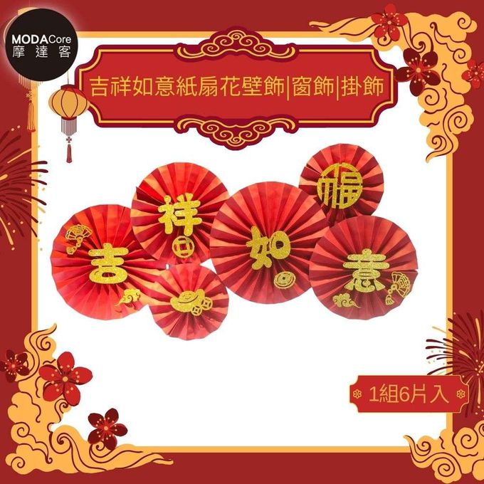 品名:◉春節開運招財◉吉祥如意紙扇花壁飾|窗飾|掛飾(1組6片入)