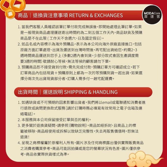 預購商品:預購為海外同步代購,遇缺貨即會通知媽咪並協助取消退款事宜。