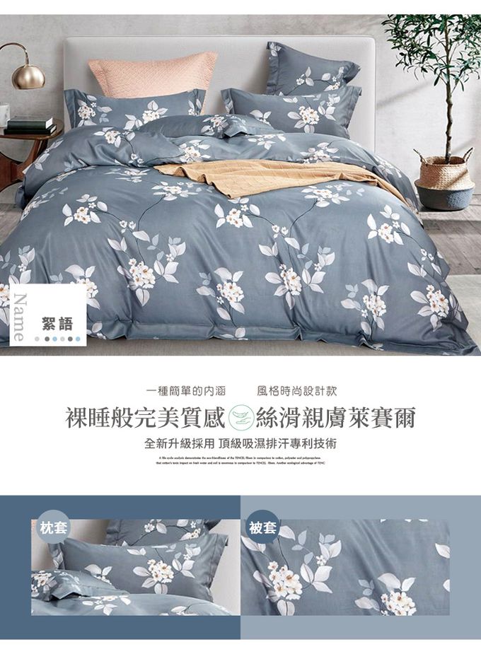 吸濕排汗天絲單人三件式床包鋪棉被套組-絮語-含床包+鋪棉兩用被套+枕套*1