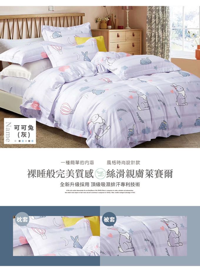 吸濕排汗天絲加大四件式床包鋪棉被套組-可可兔-含床包+鋪棉兩用被套+枕套*2