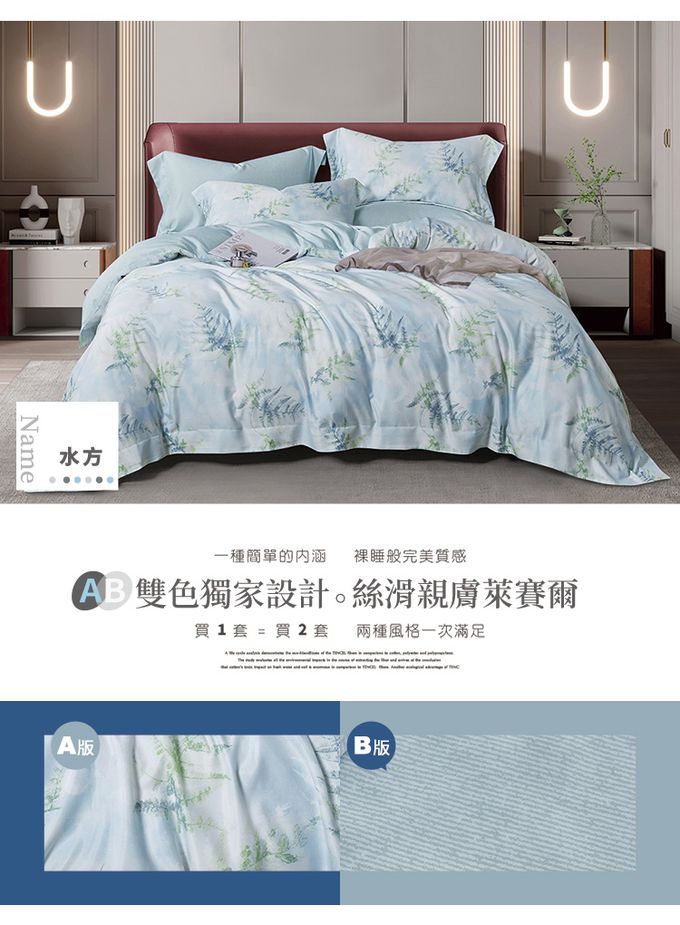 吸濕排汗天絲加大四件式床包鋪棉被套組-水方-含床包+鋪棉兩用被套+枕套*2