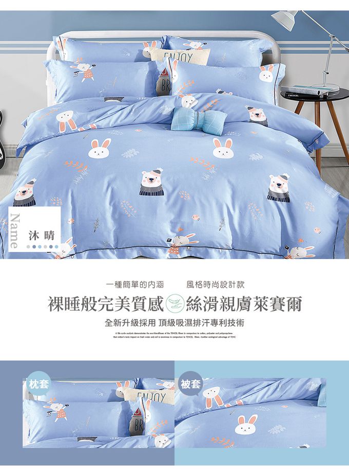吸濕排汗天絲-沐晴-單人床包被套組(含床包*1+被套*1+枕套*1)