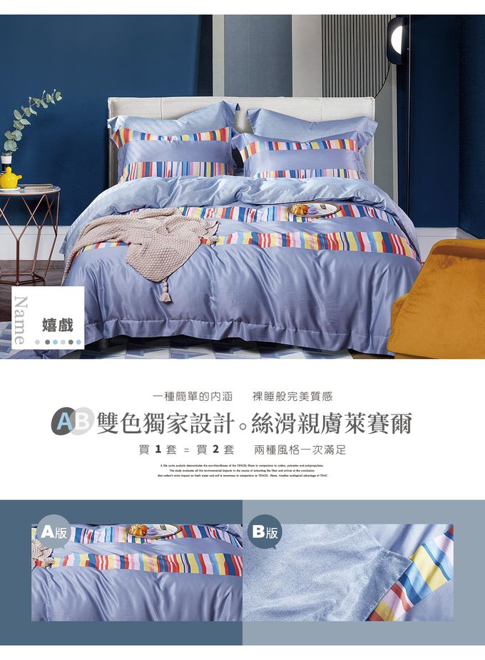 吸濕排汗天絲-嬉戲-雙人床包被套組(含床包*1+被套*1+枕套*2)