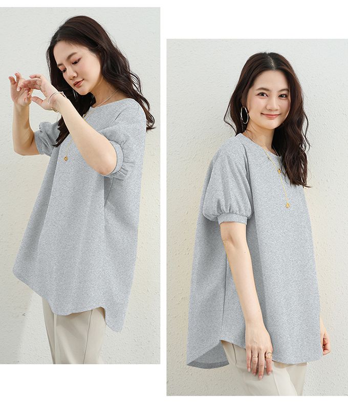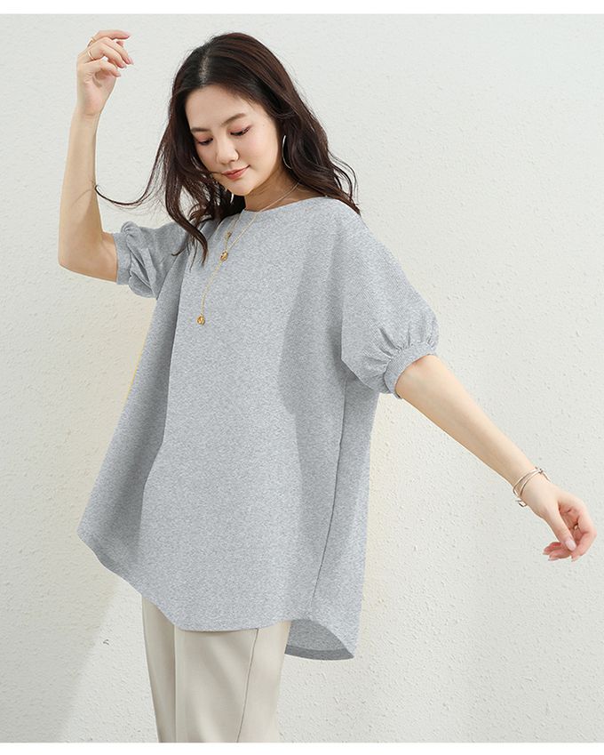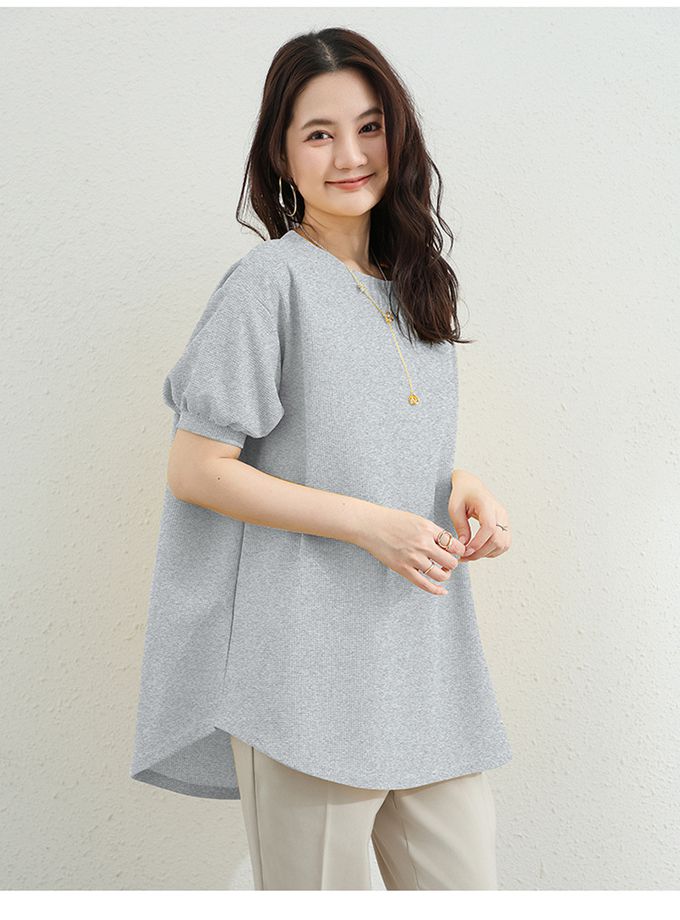 Yukié - 甜美華夫格燈籠袖長版上衣-淺灰色 (F)