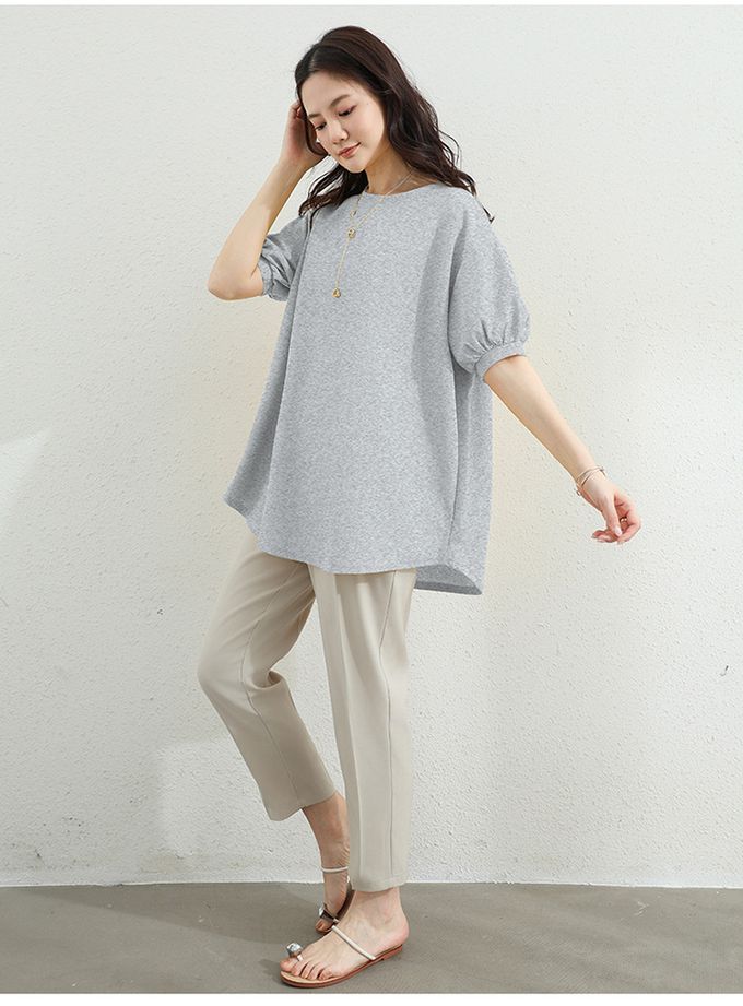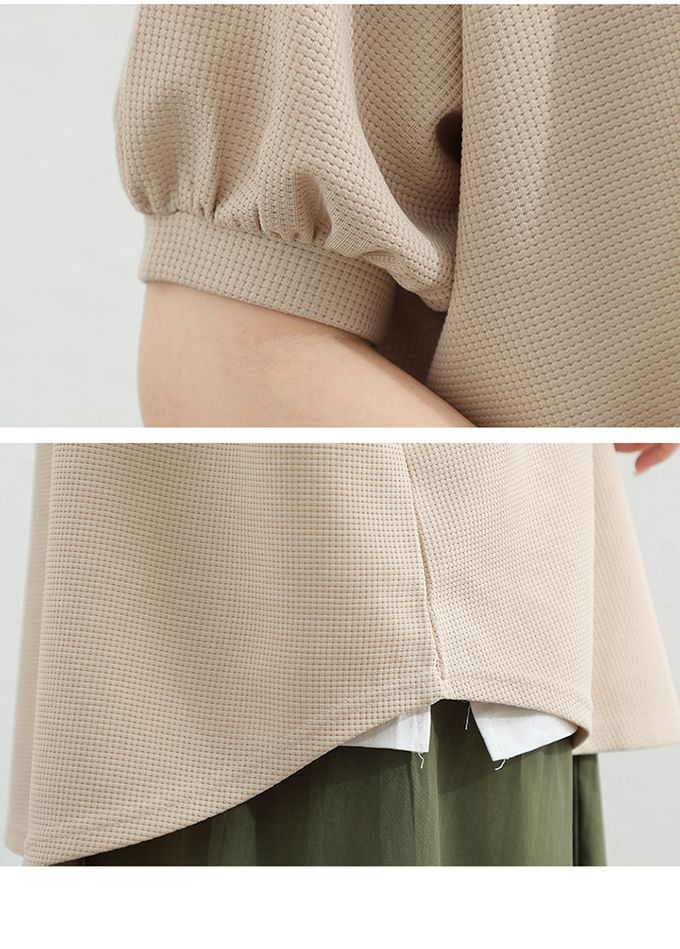 甜美華夫格燈籠袖長版上衣-淺灰色 (F)