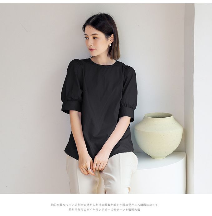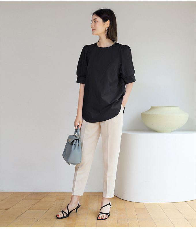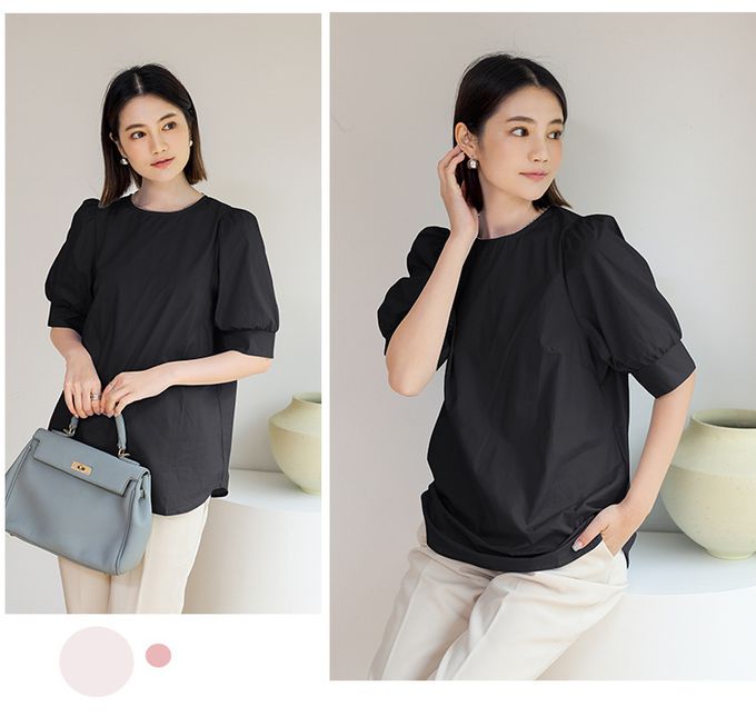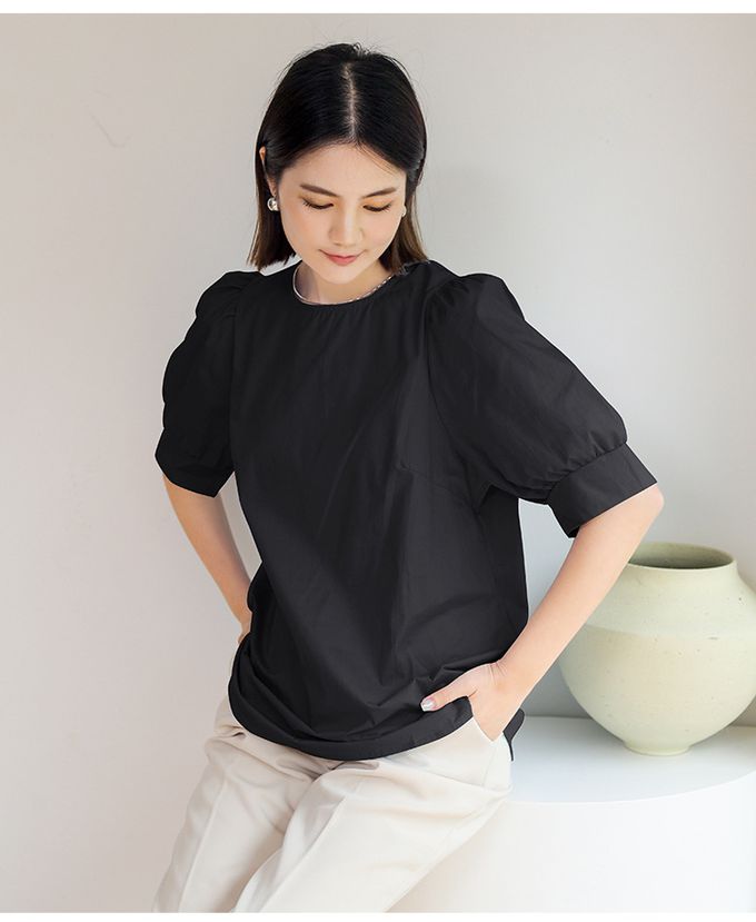 Yukié - 氣質百搭甜美燈籠袖上衣-黑色 (F)