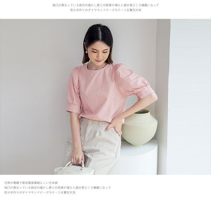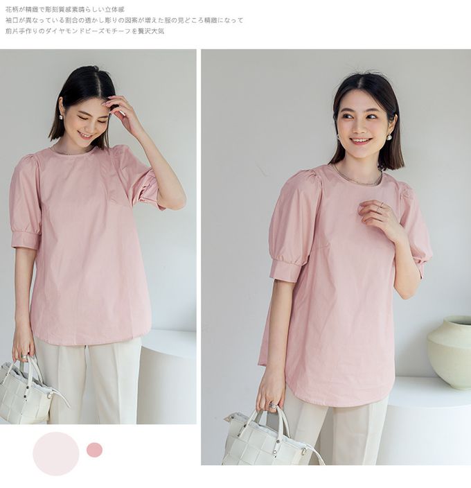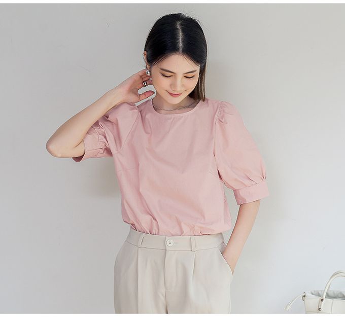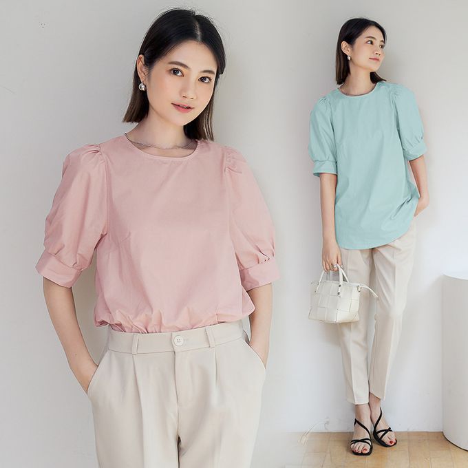 氣質百搭甜美燈籠袖上衣-粉紅色 (F)