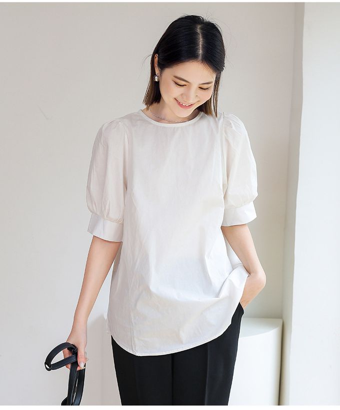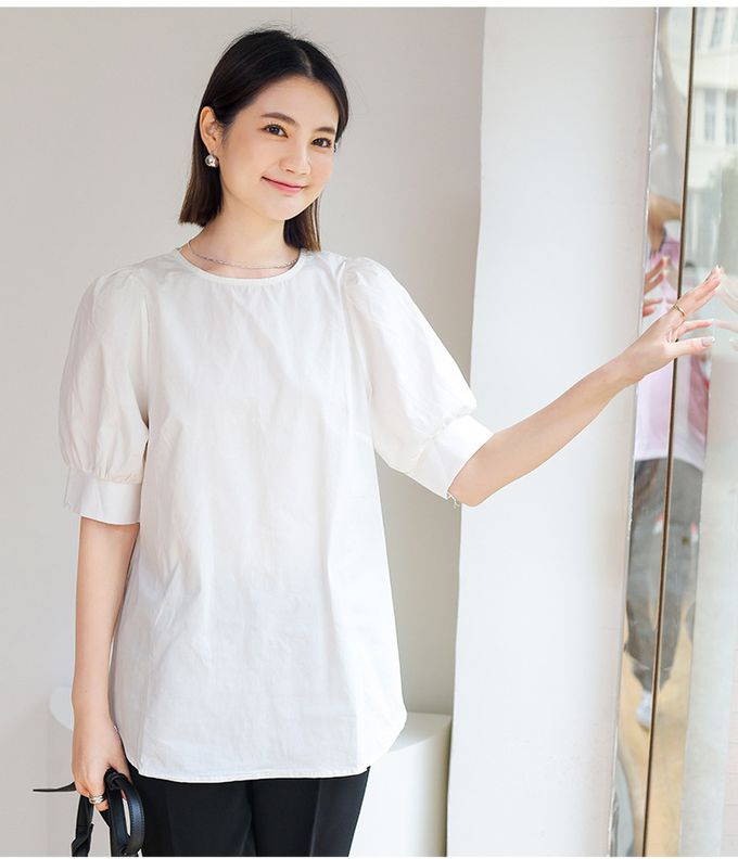 氣質百搭甜美燈籠袖上衣-白色 (F)