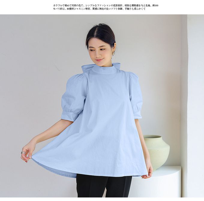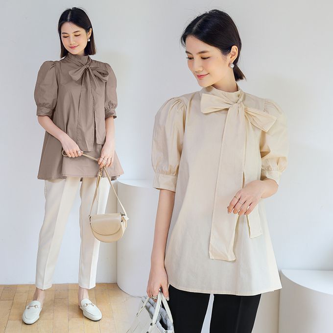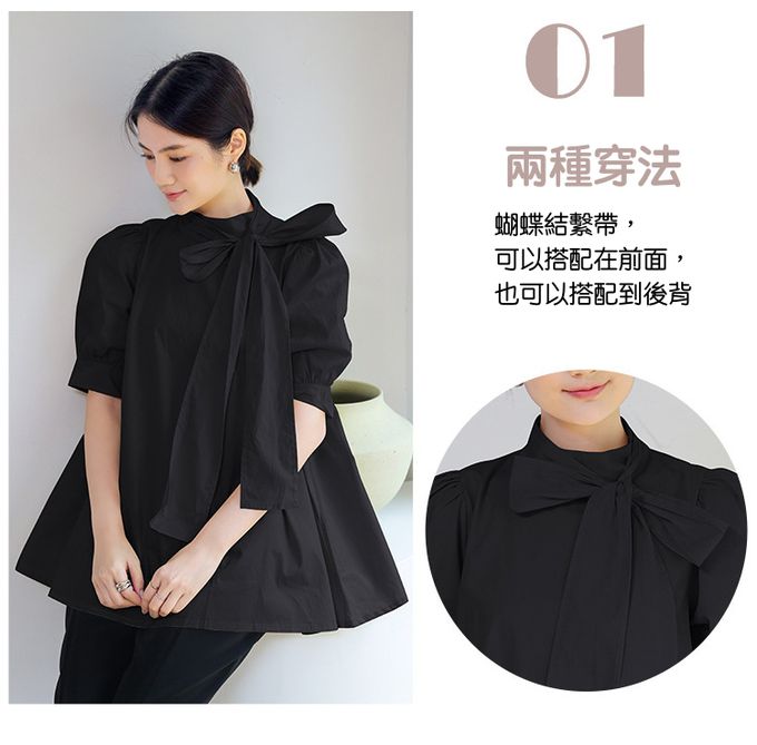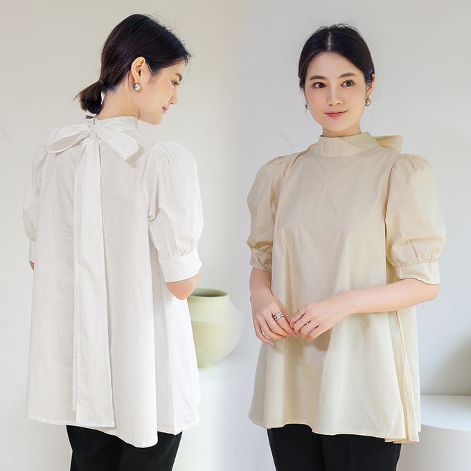 品名:優雅小立領燈籠袖上衣
