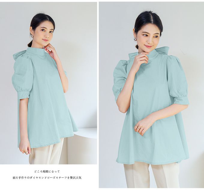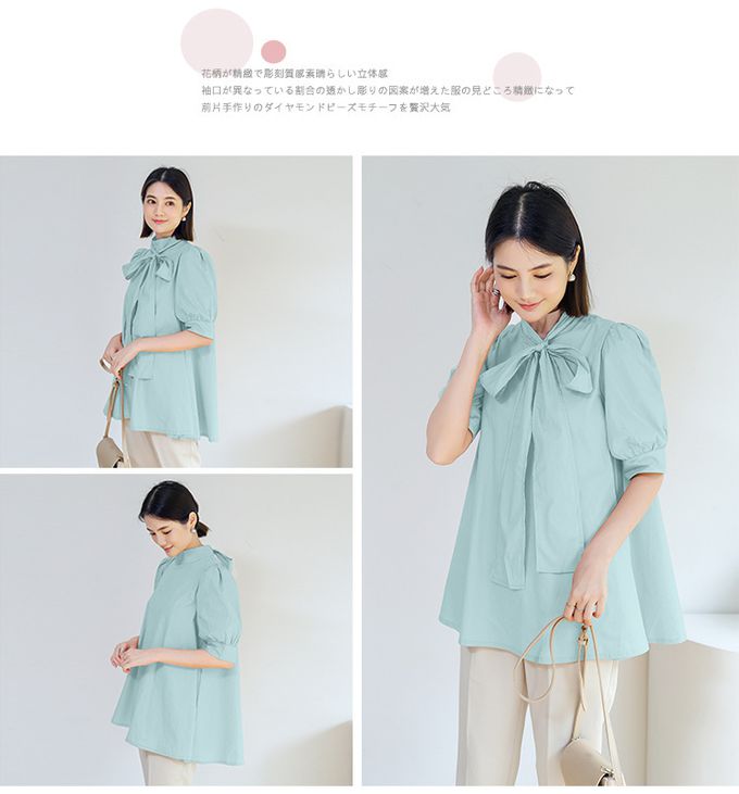 優雅小立領燈籠袖上衣-蝴蝶結-薄荷綠 (F)