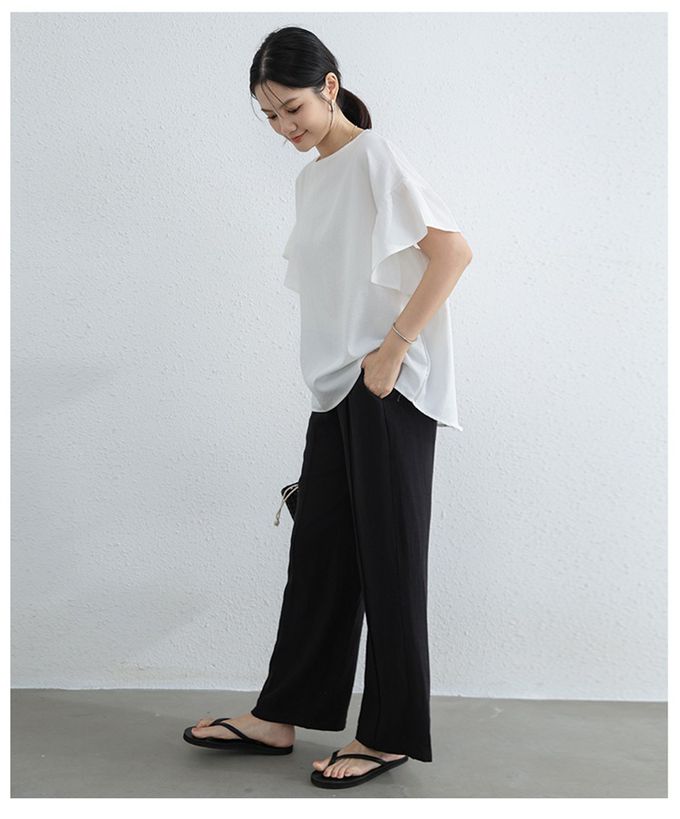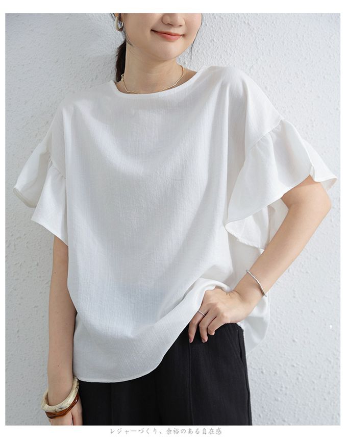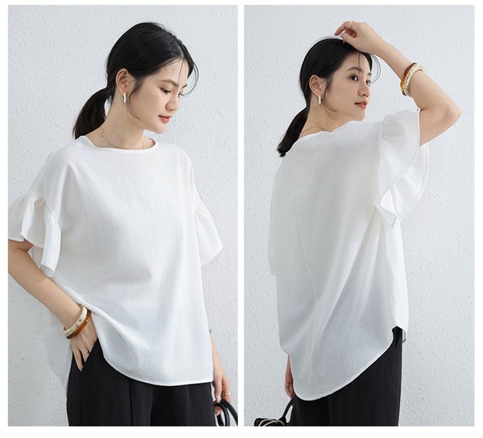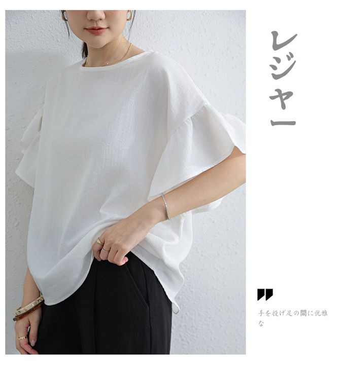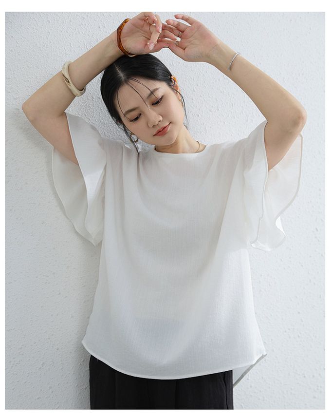 簡約優雅寬袖上衣-荷葉款-白色 (F)