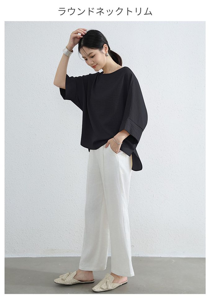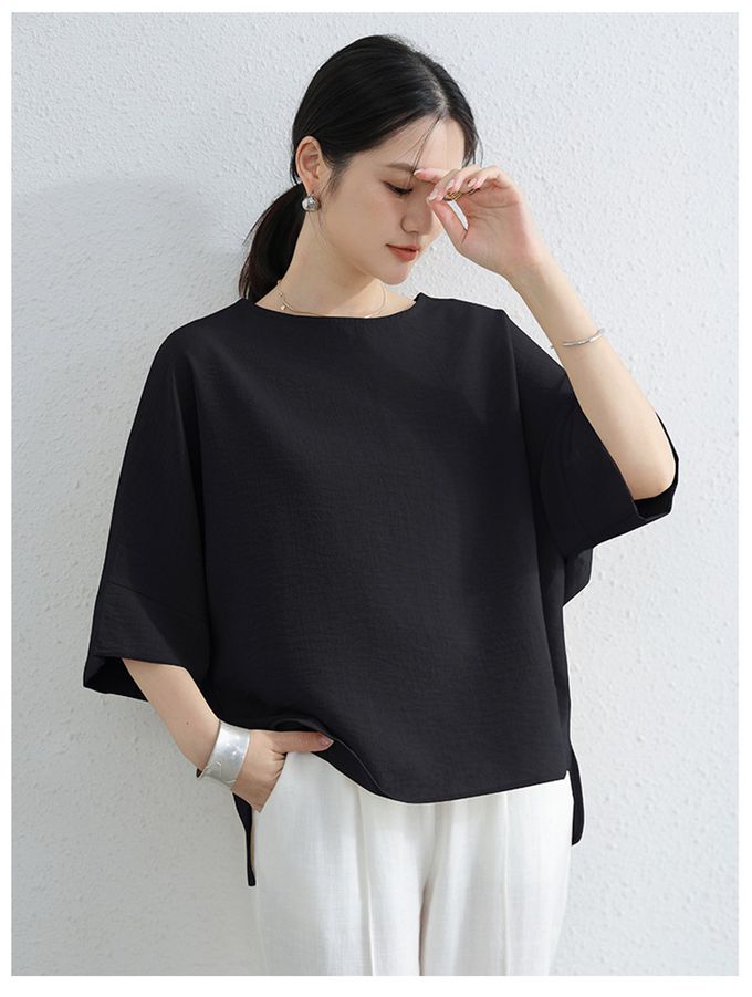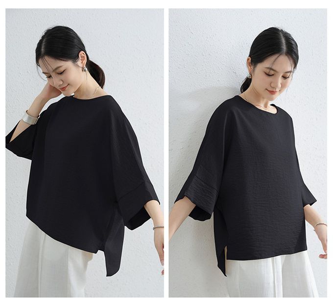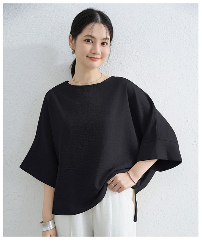 Yukié - 簡約優雅寬袖上衣-黑色 (F)